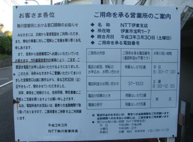熱川営業所の窓口閉鎖のお知らせ(平成3年3月)