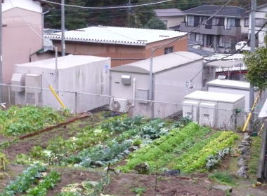 裏は畑です。コンテナは2つ。旧型のコンテナと新型のコンテナ。