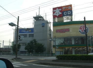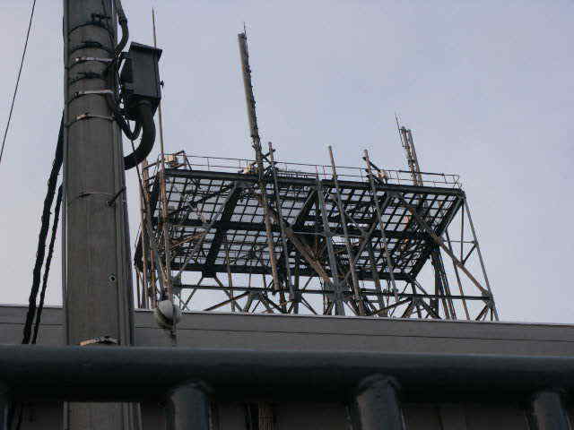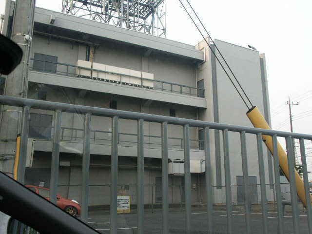 局舎ビルの屋上には、携帯電話基地局と思しきアンテナ群が立つ。